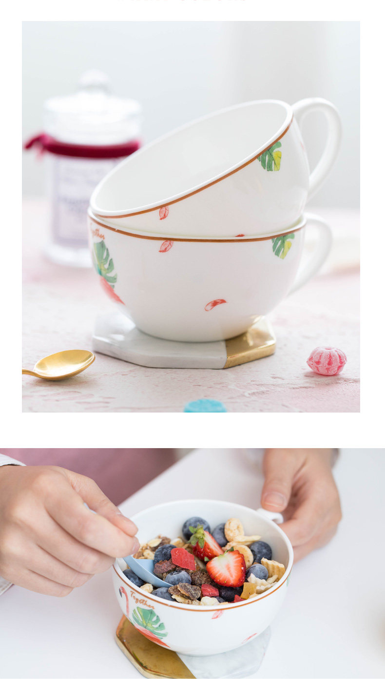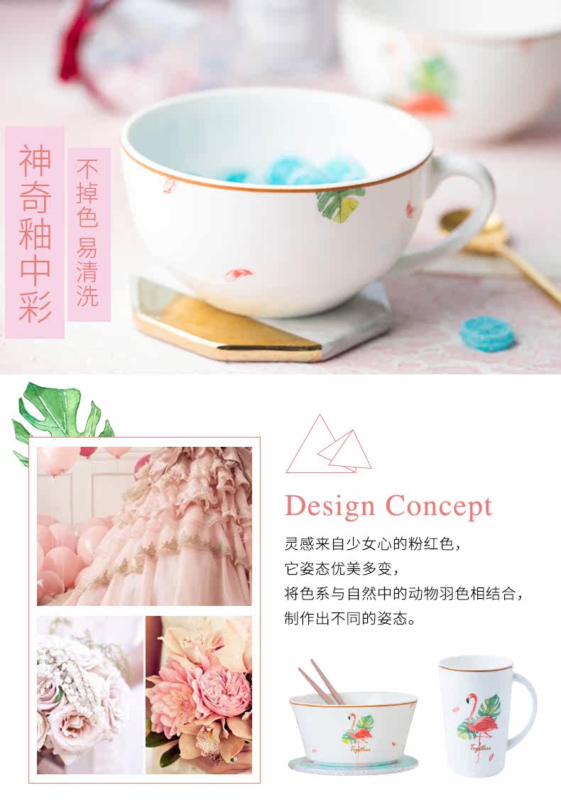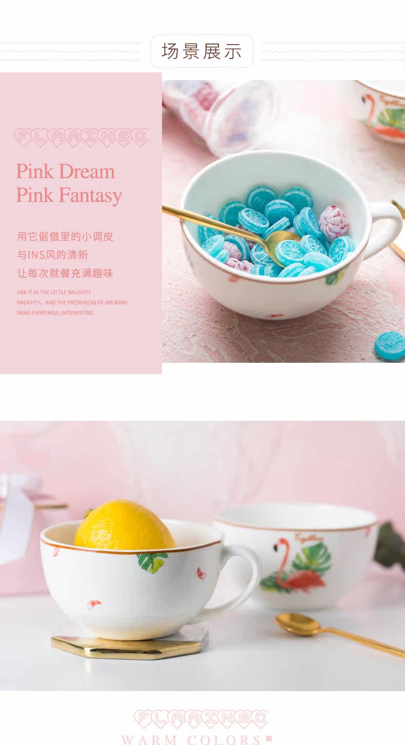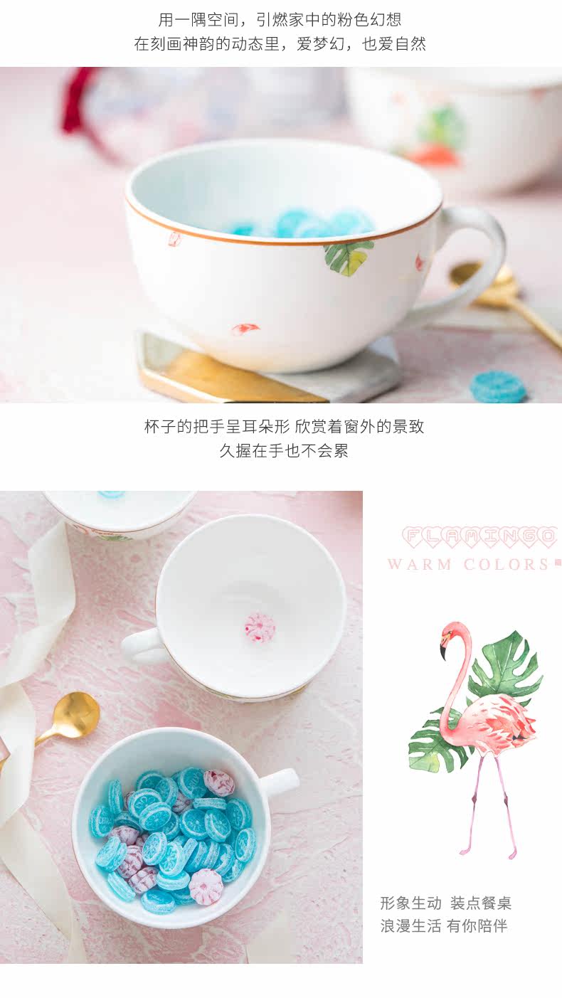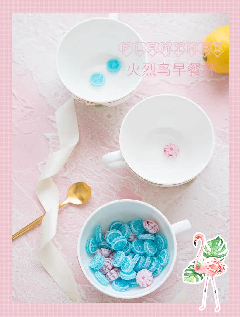 火烈鸟牛奶杯陶瓷早餐杯儿童小杯子勺子耐热家用成人水杯