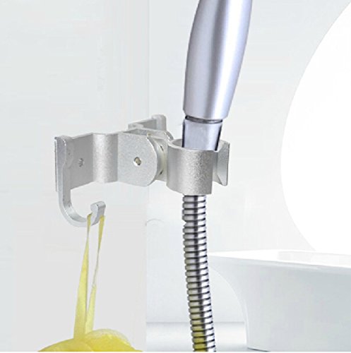 Adjustable Rotatable Lightweight Aluminum Bathroom Shower Head Bracket Showerhead Holder Wall Mount with 2 Hook