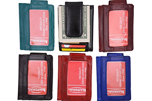 Genuine Eel Skin Leather Money Clip Front Pocket Wallet with Magnet Clip and Card ID Case by Marshal