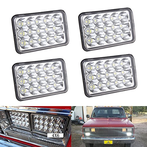 (4pcs) 4x6 inch LED Headlights Rectangular Replacement H4651 H4652 H4656 H4666 H6545 for Peterbil Kenworth Freightinger Ford Probe Chevrolet Oldsmobile Cutlass