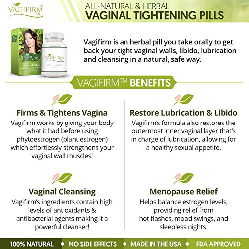 FIRMS & TIGHTENS VAGINA: Vagifirm works by giving your body what it had before using phytoestrogen (plant estrogen) which effortlessly strengthens your vaginal wall muscles!