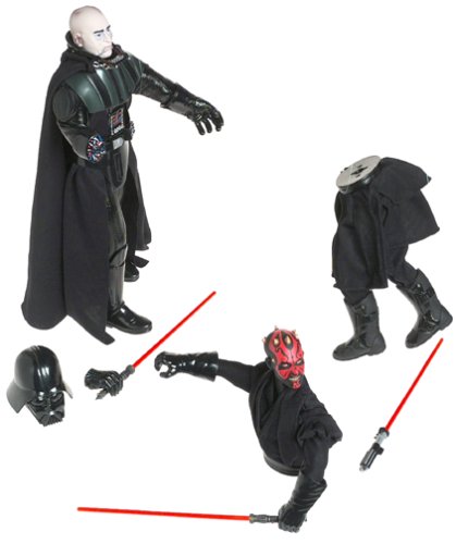 -. Binding : Toy -. Brand : Star Wars -. EAN : 0076930324387 -. Feature : Includes : Darth Vader with Red Lightsaber, Helmet and Removable Right Hand Plus Darth Maul with Double-Bladed Lightsaber and Separable Body / Figure measured approximately 12 inch tall / For age 4 and up -. IsAdultProduct : 0 -. IsAutographed : 0 -. IsMemorabilia : 0 -. Label : Hasbro -. LegalDisclaimer : All sales final. I will ship product within three business days of purchase. -. Manufacturer : Hasbro -. Model : 32438 -. MPN : 26459 -. PackageQuantity : 1 -. PartNumber : 26459 -. ProductGroup : Toy -. ProductTypeName : TOYS_AND_GAMES -. Publisher : Hasbro -. Studio : Hasbro -. Title : Star Wars Power of the Jedi 12" Action Figure - Sith Lords - Darth Vader & Darth Maul 2-Figure Set -. UPC : 885852058894