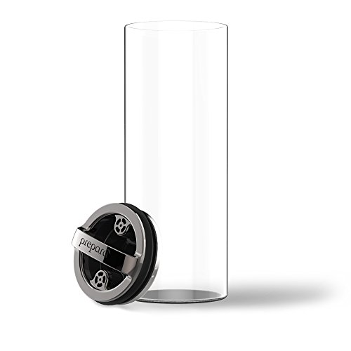 Air takes out the freshness, EVAK takes out the air! The longer your food is exposed to air, the faster it loses flavor. Glass containers with air-tight lids are readily available, but they trap stale air in with your precious food. Evacuate the air and keep your food fresher and longer with EVAK glass storage containers by Prepara. The twin valve system automatically forces the air out as you push down the lid, and allows you to easily pull up and remove the lid to access contents. It's so simple- just push down, then pull up; no buttons or levers. Perfect for coffee, tea, cereal, dried fruits, granola, herbs, spices, confections, etc. There are other food storage containers that remove the air but are made from plastic that comes in contact with your food. With EVAK, only glass and stainless steel contact your food: no harsh plastics. EVAK Is made from the highest quality borosilicate glass and stainless steel, and they are the only parts that come in contact with your food. The handle is made from super- strong ABS plastic with LFGB European grade silicone gaskets on the inside. EVAK Was launched on Kickstarter and is the winner of the 2014 Red Dot Award for Product Design, the 2014 IHA Innovation Award (International Housewares Association) and a 2014 Idea Award Finalist (sponsored by Industrial Designers Society of America). To use, simply fill glass base with dry goods for storage and press handle down to the level of food, air is automatically removed through the valves. To remove, pull handle up. Simple care: base is dishwasher safe, twist off stainless steel cap and hand wash handle.