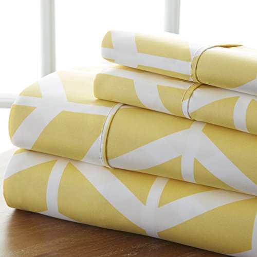 Home Collection Ieh-4PC-Arr-Queen-YE Arrow 4 Piece Sheet Set, QUEEN, Yellow
