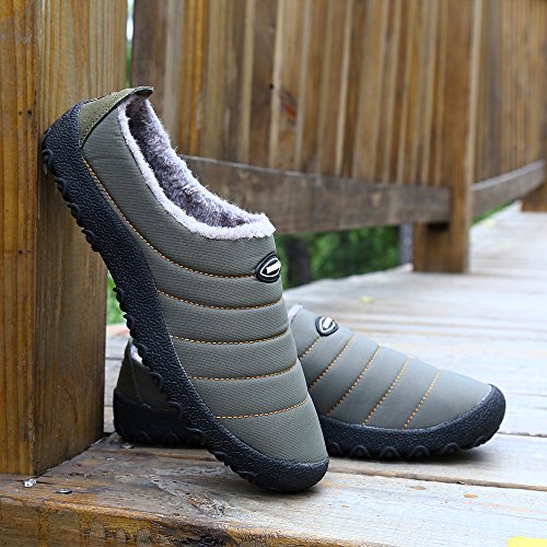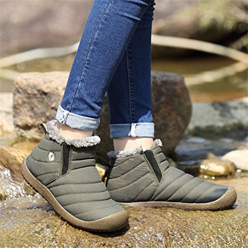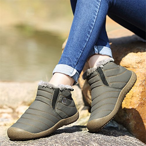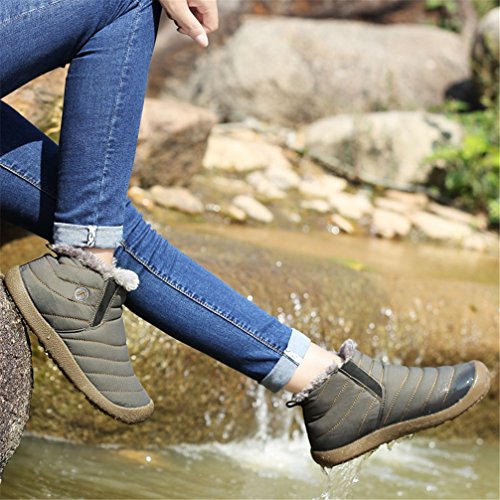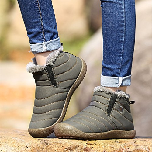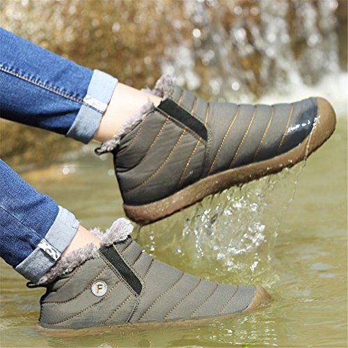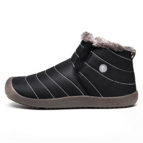 | UBFEN Men Women Shoes Winter Warm Fully Fur Lined Snow Boots Ankle Waterproof Outdoor Slip on Casual |