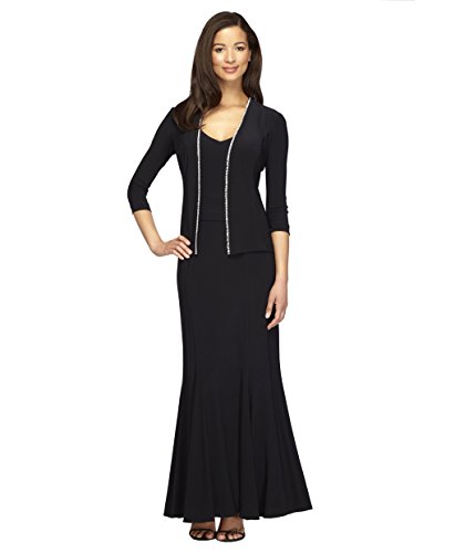 Long mock jkt dress with v-neckline, 3/4 sleeves and beaded trim detail