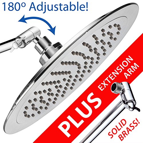 GREAT HOLIDAY GIFT PACK! Includes Mega Size 9-inch Chrome Face Round Rainfall Shower Head with 105 rub-clean jets PLUS Solid Brass 11 Inch Height and Angle Adjustable Extension Arm ($14.99 Value). Luxurious Rainfall Spa Shower Experience just got even better with opportunity to set your shower at Perfect Height, Angle and Easy Reach!