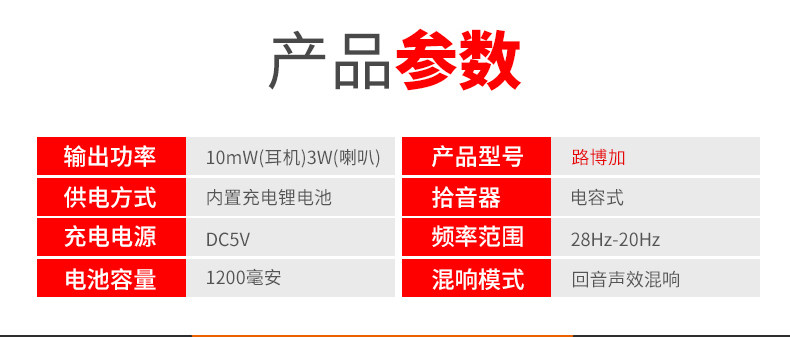Product parameters: