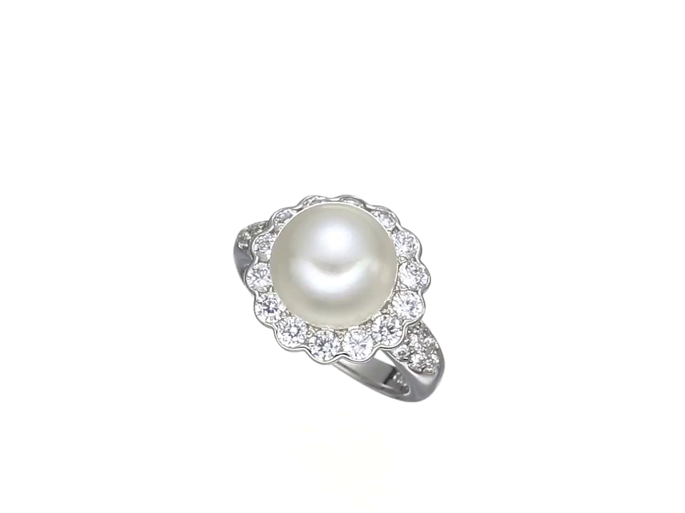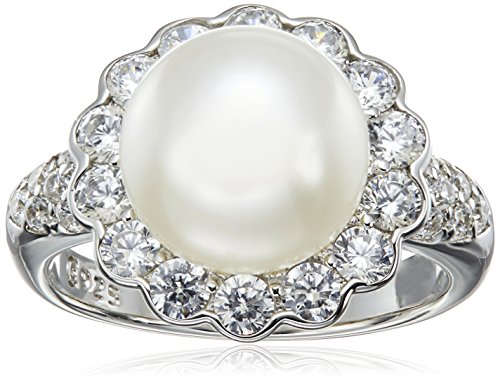 Platinum Plated Sterling Silver Cubic Zirconia Freshwater Cultured Flower Pearl Ring