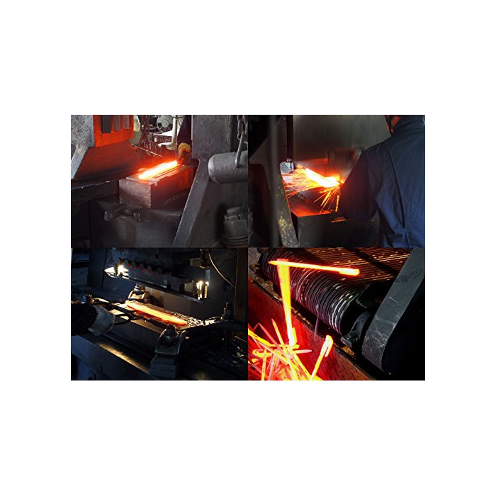 소재가 둥근 강재를 약1100℃가 되까지 새빨갛게 뜨거워지고, 약1톤 이라고 하는 강력한 힘으로 단번에 단면을 타원형으로 으깬 단조 페그(말뚝).가열한 강재에 강력한 압력을 더하는 것에 따라,우수한 강도를 가지는 페그(말뚝)가 완성합니다.