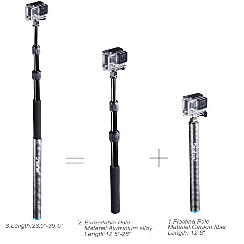 [FLOATABLE]: S3 is the longest floating pole for gopro on the current market, reach 39.5" when it fully extend.