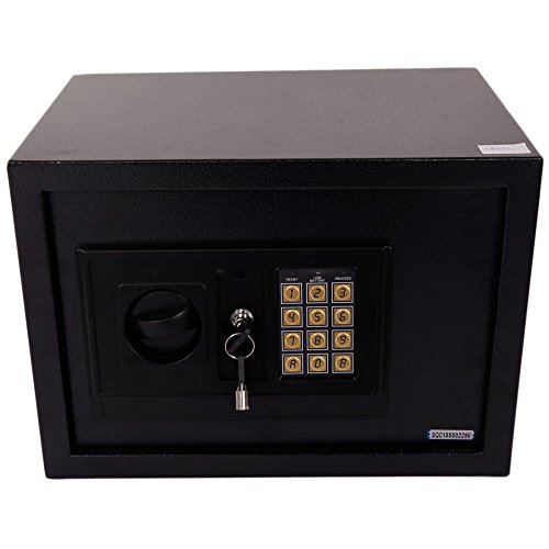 -. Feature : Designed to hold jewelry, noble metals, cash, documents, or other hard-to-replace items / Offer two options to open, code or key / Solid and robust steel construction with sturdy locks / Small size, Dimensions: (13.85 x 9.92 x 9.92)" / (35.2 x 25.2 x 25.2)cm(L x W x H),easily fit anywhere(Home or Office) / Burglary resistant design, highly reliable and dependable