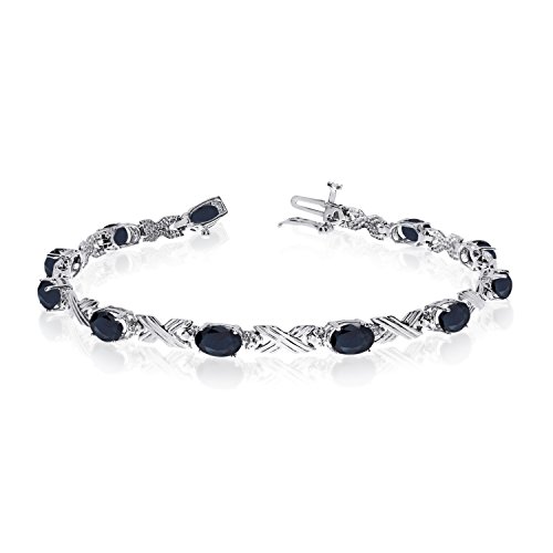 -. Title : 14K White Gold Oval Sapphire and Diamond Bracelet
