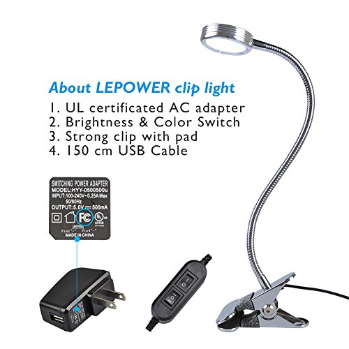 LEPOWER Clip on Light / Clip on Lamp/ Light Color Changeable/ Night Light Clip on for Desk, Bed Headboard and Computers (Silver)