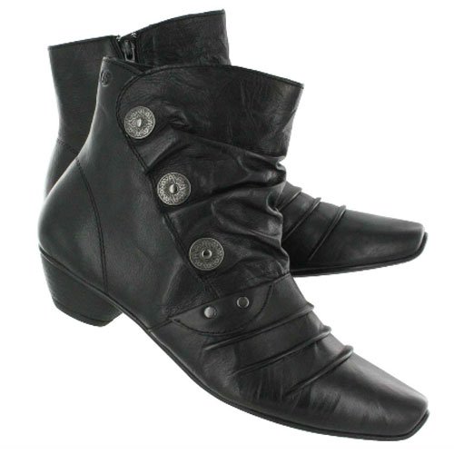 Premium leather upper with a metal button accents for much added visual appeal. Inside zipper allows for easy on-and-off wear. Soft leather lining ensures an abrasion-free environment for all-day wear. Soft leather insole provides cushioning and support with every step. Stacked heel on top a polyurethane outsole helps you to maintain a confident stride. Imported.