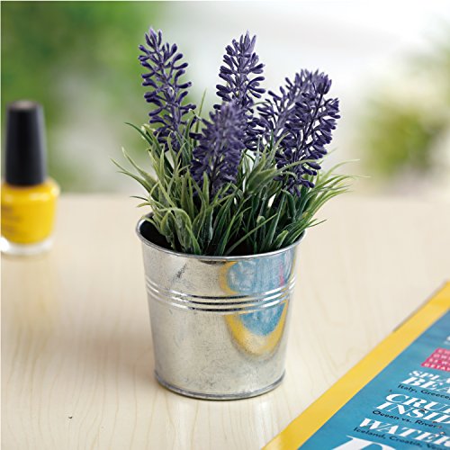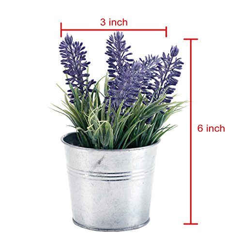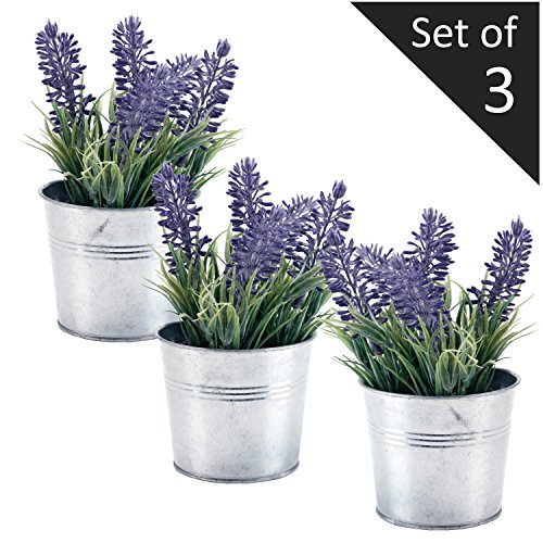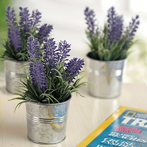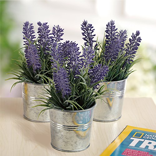 6-inch Artificial Lavender Plant Decor, Faux Flowers with Metal Planter Pot, Set of 3