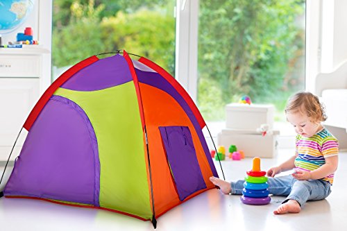 ● HIGHLIGHTS ? This Vibrant Multi-Colored Dome Tent is suitable for 2-3 kids who have a very creative imagination! STRONGER/UPGRADED Fiber Glass Poles for support. Children can play all day in this light portable play tent indoors and out. Alvantor is a registered trademark.