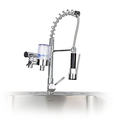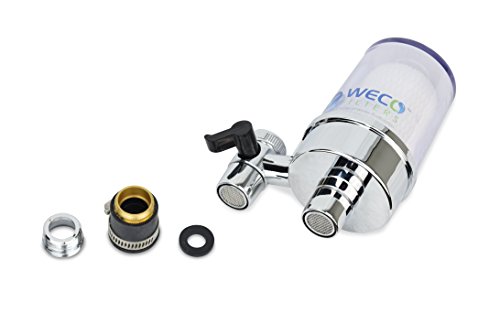 The WECO TF-04 Faucet Mount Water Filter is a universal faucet mount filter designed to solve taste and odor problems in drinking water caused by chlorine disinfectants. Chlorinated water is an irritant to the eyes, nose and throat. It ruins the taste of hot and cold drinks like coffee, tea, juice mixes and weight-loss products. Pets and houseplants are also sensitive to high chlorine levels in water. The WECO TF-04 water filter eliminates offensive taste and odor problems with a special calcium-based filtration media. Unlike budget faucet filters that allow some chlorine to pass through, the WECO TF-04 filter media is made for high-flow kitchen and bathroom faucets. You'll always have cold chlorine-free water right from the tap! But that's not all. The TF-04 comes with a ceramic filter for removal of microscopic contaminants including bacteria, parasite cysts, algae and other biological contamination like insect pieces. Ceramic filters are recognized by many organizations, like the Centers for Disease Control and Prevention (CDC), as effective protection against biologically contaminated drinking water. The ceramic filter also keeps dirt and mineral grit from clogging your faucet aerator, coffee pot and iced tea machine. Rust particles, insoluble carbonate scale, colloidal clay, sand and other solids are captured by the ceramic filter so they don't contaminate ice cubes, foods and beverages. The clear filter housing makes it easy to see when the filter cartridge needs to be changed. As the ceramic filter captures debris it will change from white to a brownish color, depending on the type of contamination in your water. You can use the filter dial to select between filtered water for drinking, pets and food preparation or unfiltered tap water for cleaning and dishwashing.Feature