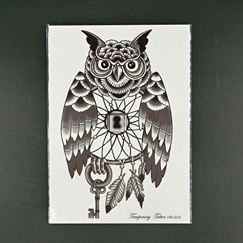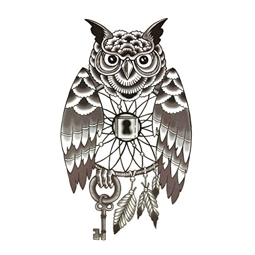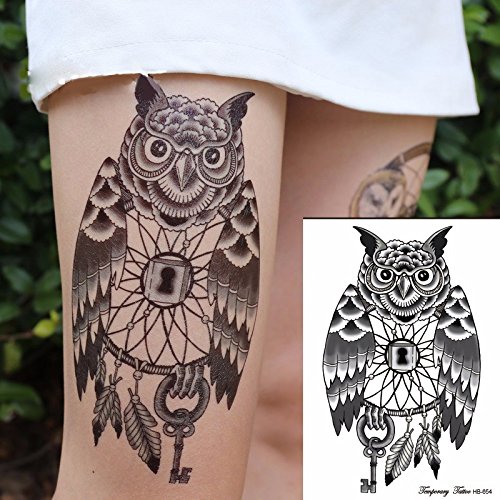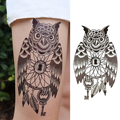 Oottati Cat Head Owl Lock Key Black Thigh Temporary Tattoo