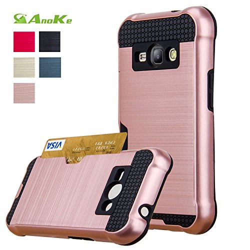 Galaxy J1 Ace Case, AnoKe [Credit Card Slots Holder][Not Wallet] Hard Silicone Rubber Hybrid Armor Shockproof Protective Holster Cover Case For Samsung Galaxy J1 Ace - KLS Rose Gold