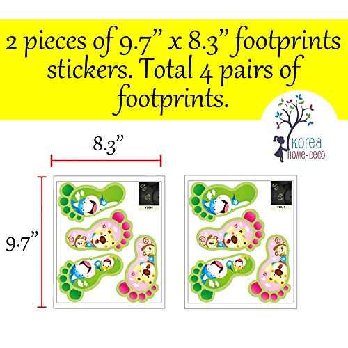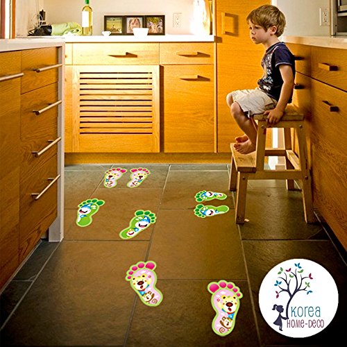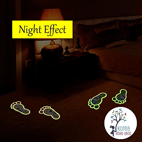 Korea Home Deco 8 PCS Huge Glow In The Dark Luminous Fluorescent PVC Wall Stickers Decals Human Tracks Footprint - 5.2 Inch - Suitable for Kids Baby Children Room Playroom Bedroom Living Room