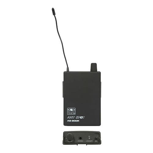 Studio : Galaxy Audio Publisher : Galaxy Audio Product Description The Galaxy Audio AS-900R receiver works in combination with the Galaxy Audio AS-900T transmitter for a complete entry-level wireless system and a solution for monitoring freedom. The AS-900R has an 80mW headphone output with volume control, RF and low-battery indicator. It runs on 2 'AA' batteries. 0