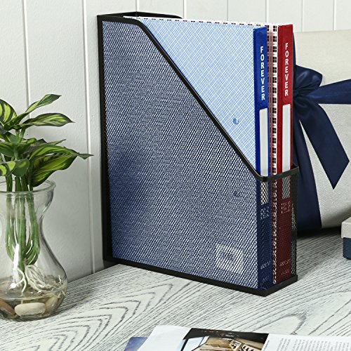 MyGift Metal Mesh Magazine Holder, Desktop File Storage Organizer Rack, Black
