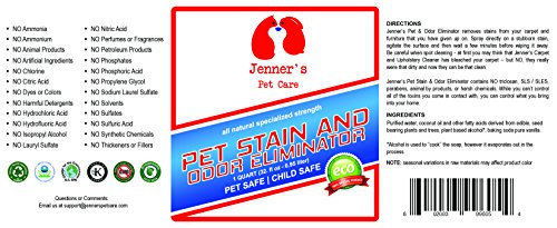 Animal Smell Remover Jenner's Pet Care All Natural Dog Puppy Cat Kitten Stain & Odor Eliminator Carpet Cleaner Professional Strength
