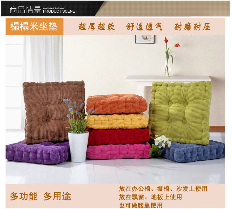Style: simple and modern Material: Plush Size: circular (diameter 38cm), Round (diameter 42cm), Round (diameter 48cm), Square (38X38cm), Square (42X42cm), Square (48X48cm) Color Category: grass green coffee color Rose red orange yellow purple denim blue corn