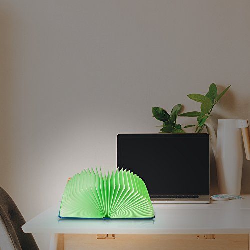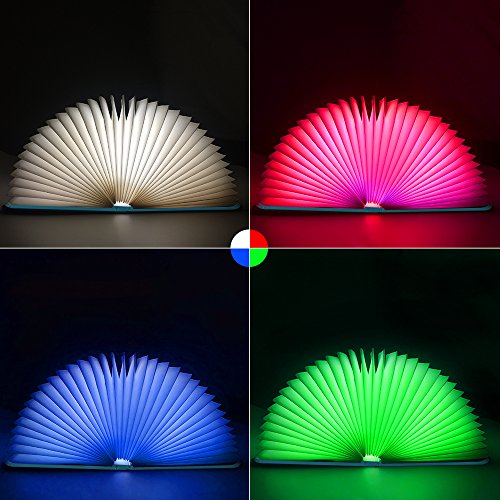 - 4 Various Colors:The folding book night light has 4 colors,the light colors change circularly between Warm White, Red, Blue, Green color. The cover has a great soft texture, able to fold right back on itself, which means it can cast a light around 360 degrees.
