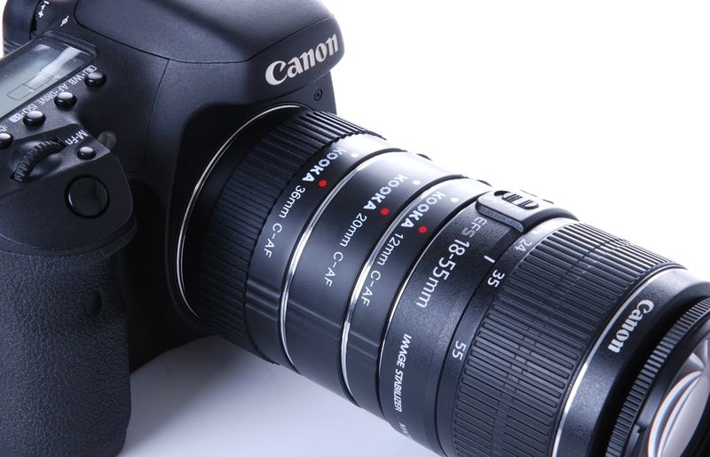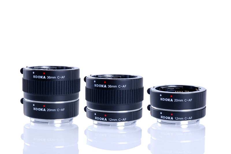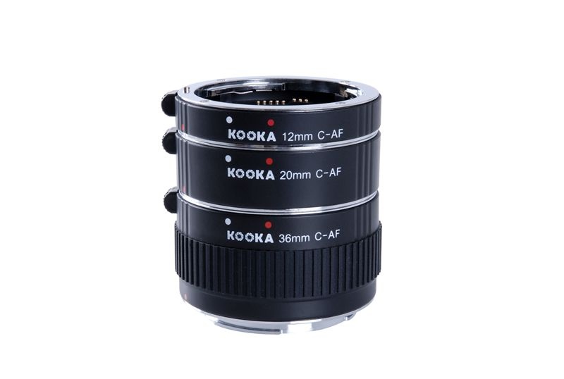 This Autofocus Extension Tube Set (12/20/36mm) for Canon from KOOKA contains three tubes of different length, a 12 mm, 20 mm, and 36 mm, which can be used individually or in any combination to obtain the desired magnification.(An individual 25mm autofocus extension tube is available).