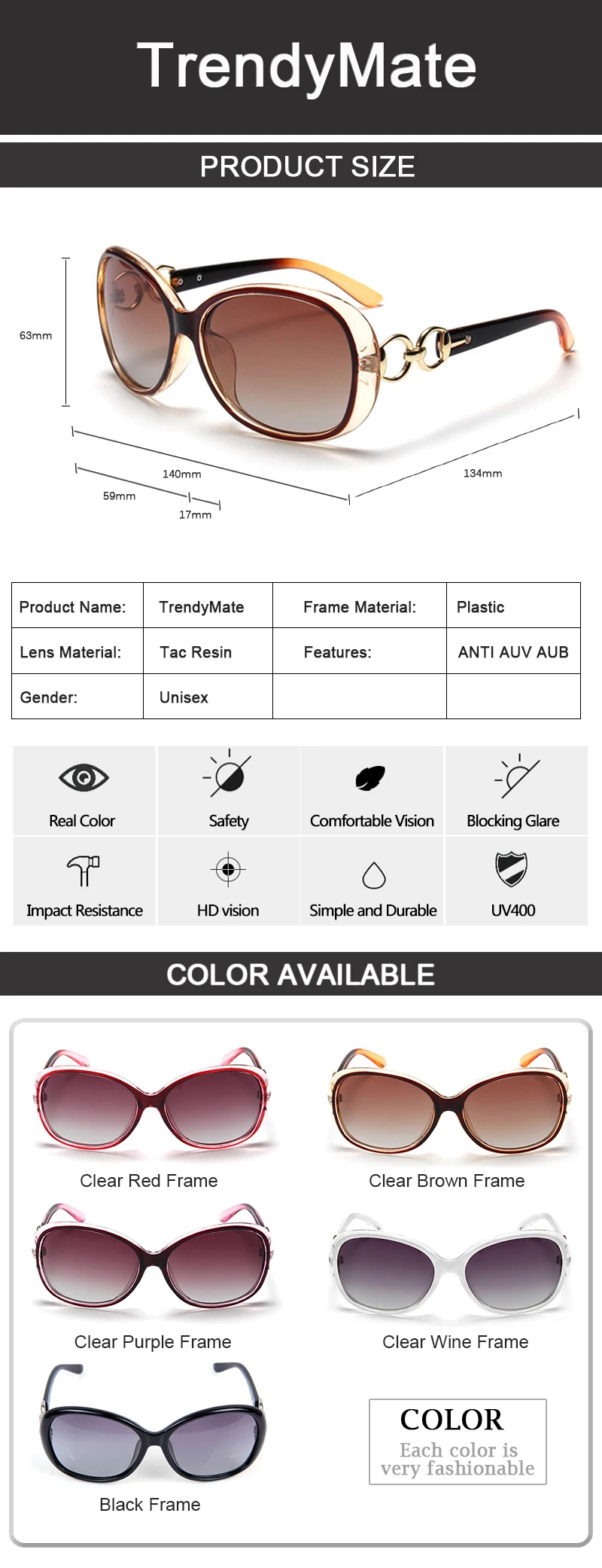 Sunglasses Function:UV400 Protection Against Harmful UVA/UVB RAYS