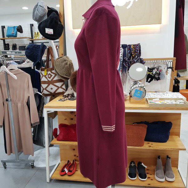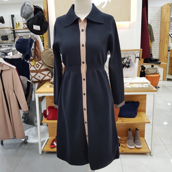 배색라인 원피스로 허리라인이 살짝들어가져서 핏이여성스럽게 보이며길이감도적당해서 어떤아우터에도잘어울릴 아이템이예요~