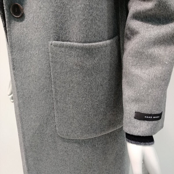 울 혼방 소재를 사용하였고 가볍고 고급스러운 티치감의 소재를 사용하였습니다 핸드메이드 코트는인체의 곡선을 고려하여 제작되어 착용시 실루엣이고급스럽고 가벼워 코트안에 자켓등 다른 아우터와도레이어드하여 입을수 있습니다 심플한 디자인으로 유행에 구애없이 입기 좋은 스타일 입니다36 3/4 인치 기장 입니다