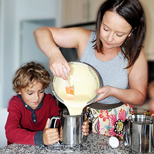 PERFECT PANCAKES WITHOUT THE MESS: No-drip, stainless steel squeeze dispenser with measuring label makes pouring batter neat & easy! Holds 1.2L - more than most 0.9L plastic dispensers.