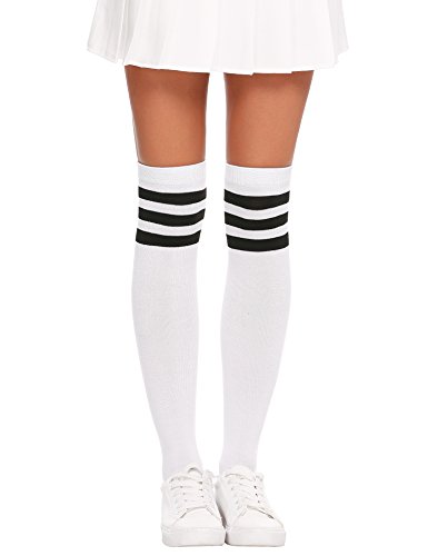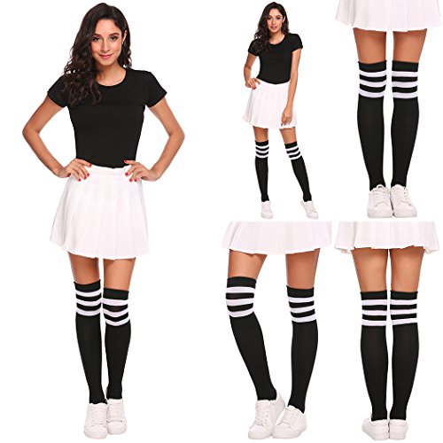 -. Feature : FASHION DESIGN: Thick, durable and in great quality. Super cute with shorts and mini skirts. Knee-high socks with three stripes at the top, easy matching for most of Your daily wearing. / SUPER STRETCHY: Highly elastic and durable, Comfortable stretch for all day wear. The Socks fit just over the knee on average height woman, flexible and comfortable. / OCCASION: Easy matching sock, perfect for cosplay, costume, theme party, volleyball, pageant, sports festivals, concerts, football games and etc. This is must have for all girls. / MATERIAL: 95% Cotton, 5% Spandex.soft and breathable. / NOTICE: Hand wash, do not use chemical detergent to wash.Do not machine wash or tumble dry.