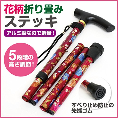 -. Title : 伸縮折りたたみ式杖 軽量アルミステッキ 花柄 長さ5段階調整