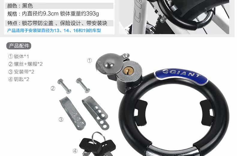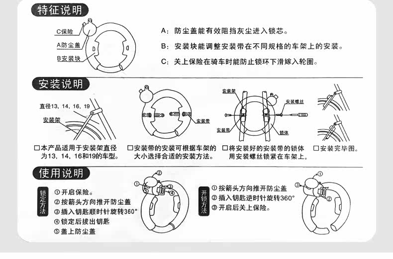 自行车锁带保险马蹄锁城市车山地车圈锁防盗锁钢缆锁