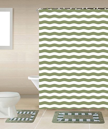 -. Feature : 15 Piece Stripes Bathroom Accessory Set / 2 Bath rugs: 1-18" x 29.5" Bath Mat, 1-18" x 18" Contour rug / 1-Fabric Shower Curtain (72" x 72"), 12 Shower Curtain Rings / High Quality Mats with Rubber Backing / Durable and Easy to Clean; Machine Washable