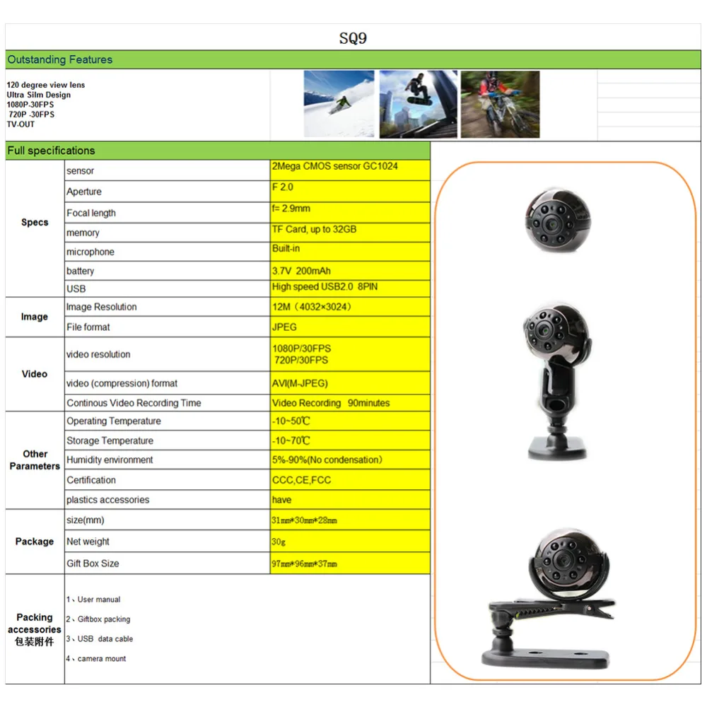 Model Number:Mini Camera SQ8 DV Voice Video Recorder HD 1080P 720P Sport Mini