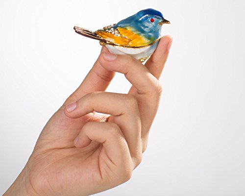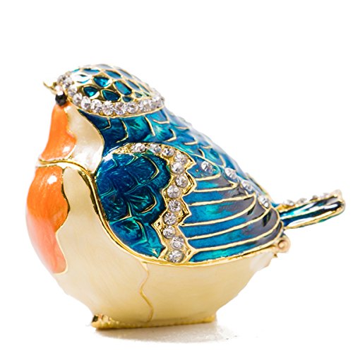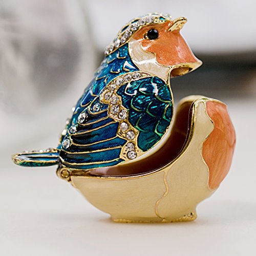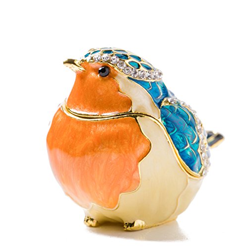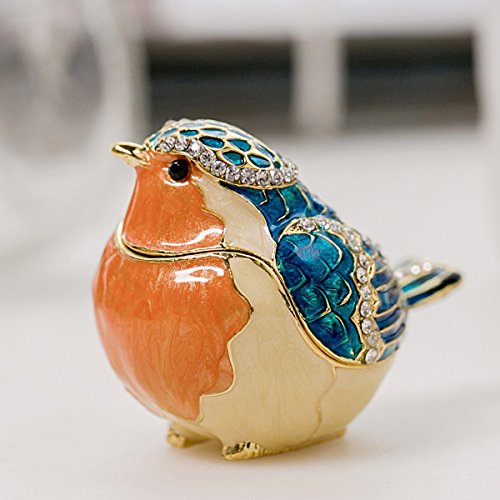 Easter Day Gifts for Her for Him Birthday Gifts for Women Fine Pewter Boxes Jeweled Bird Trinket Small Box with Crystal Bird Decor Jewelry Holder Organizer Trinket Boxes Hinged (Orange and Blue)