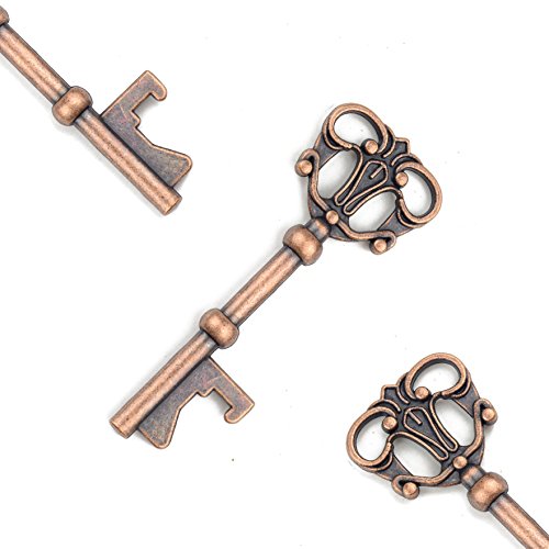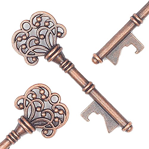 Makhry Wedding Favor Gift Set Mixed 15 Extra Large Skeleton Key Shaped Bottle Opener With Sikly Tassels for Classical Rustic Wedding Decoration (Copper)