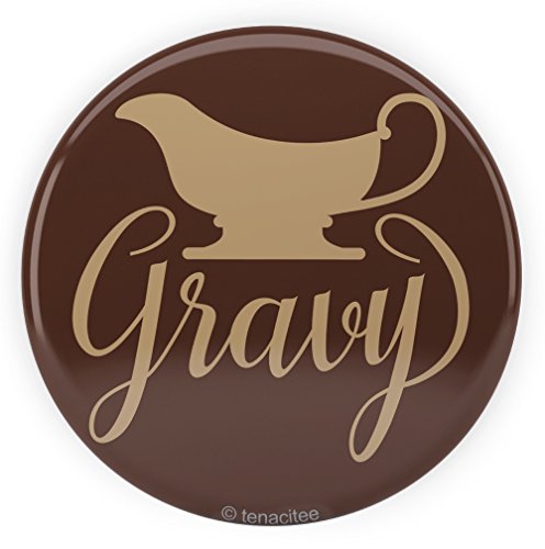 Binding : Apparel Product Description Gravy 2.25" Button by Tenacitee. Express yourself! Buttons are the perfect way to let the world know how you feel. Our buttons are designed, printed, and handmade at Tenacitee's studio in Oklahoma. Proudly made here in the USA! This 2.25" button has a metal shell with pinback and mylar cover to protect from scratches. Perfect to decorate your shirt, jacket, bag, or put anywhere else you want! It's a great gift or giveaway for parties. 0