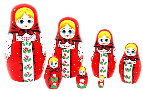 -. Feature : This set includes 7 handcrafted and hand painted dolls / The size of the biggest doll is 5 - 5.5" tall / Made from Linden Wood. Non Toxic / VERY NICE! Red with white and pink flowers / Makes unique gift! No two exactly alike