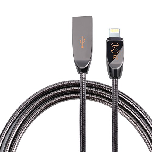 Pi Armor - iPhone charger and data sync, 1000 mm - Zine metal plug and metal spring shield art design, work for all Lightning Devices - Piano Black Finish color