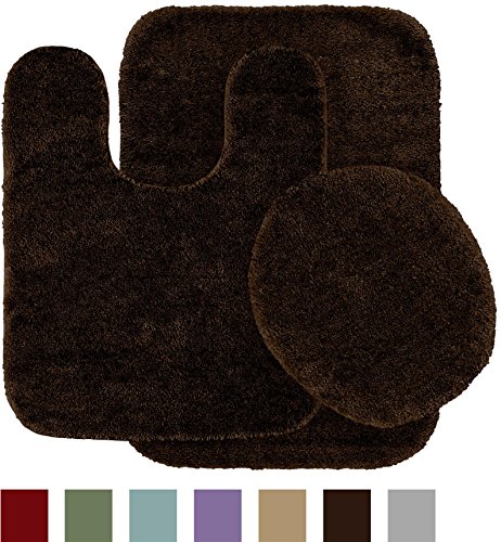 Traditional bath rugs by Garland Rug are soft and stylish. The plush design lends a classic understated touch to your bath coordinates collection. This 3-piece rug set comes with an 21 inch x 34 inch bath mat, 21 inch x 24 inch toilet contour and a 17 inch x 14 inch universal toilet lid cover designed to fit most toilet lids. The soft pile of this rug is made of 100% Nylon and features a washable skid resistant latex backing. Like all products made by Garland Rug these Traditional rugs are proudly made in the USA.Feature