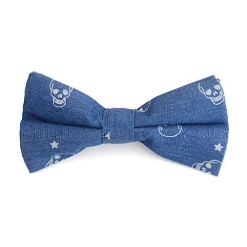 -. Title : Flammi Men's Pre-Tied Bowtie Adjustable Length Cotton Denim P.R.Inted Bow Tie