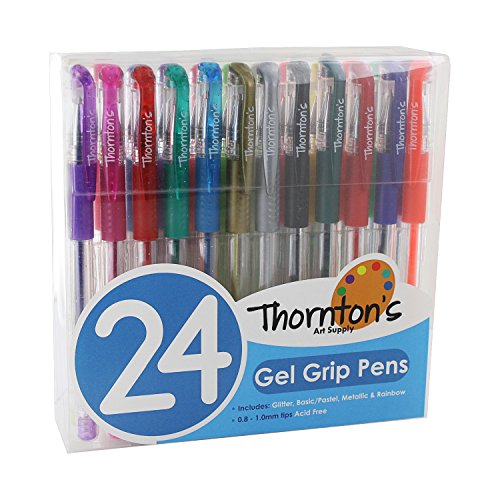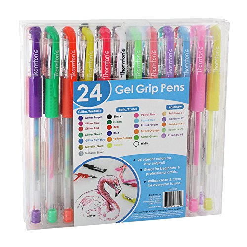 -. Title : Thornton's Art Supply Premium Assorted Neon, Glitter, Patel, Rainbow Colors Gel Grip Pens Value Set For Adult Coloring Books, Assorted Ink - Set of 24