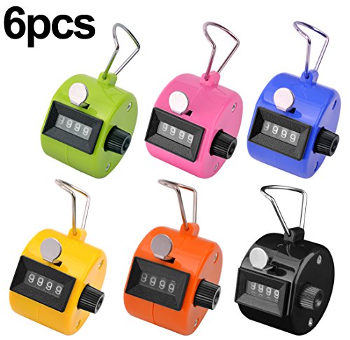 Ktrio Pack of 6 Color Hand Tally Counter 4 Digit Tally Counter Mechanical Palm Click Counter Count Clicker Assorted Color Hand Held Counter Clicker for Sport Stadium Coach Casino and Other Event