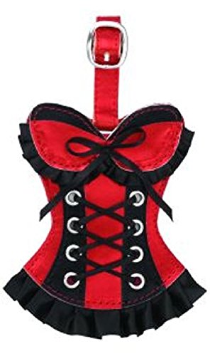 Measure approx. 6.5" tall including strap (corset part is about 3.5" x 4" wide).Has space for name, address, phone number and e-mail address on back.